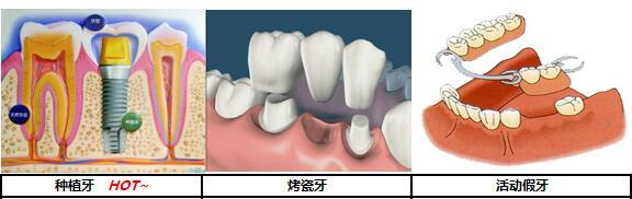 目前假牙修复方法按照简单的分类可分为:活动假牙、固定假牙(烤瓷牙)以及种植牙。因修复方式的不同,价格也会不同,老年人可以根据自己的经济情况进行选择。下面我们看一下,三种方法的对比吧!